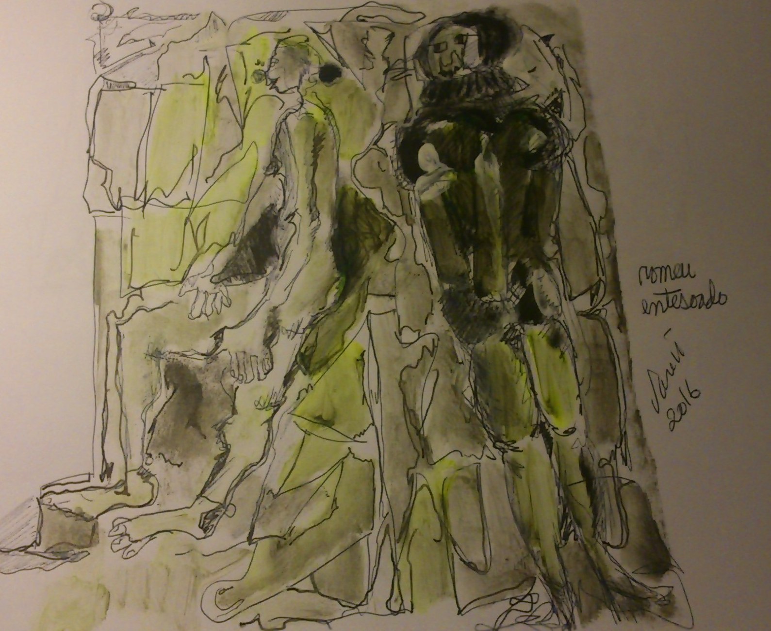 (tratata-tratata-tratata. ouvem-se gritos na parte de dentro do casarão. eram provenientes de seis guardas republicanos em quase idade de pré-reforma apoiados nas suas espingardas da primeira grande guerra. com as rajadas marcelo levanta-se do sofá e dirige-se ao gnr-porteiro que apresenta sintomas de falta de ar.)